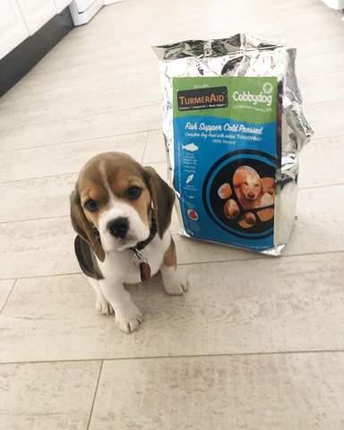 We done a lot of research and was so interested in the nutritional benefits of raw feeding however we have a 2 year old son and we’re a bit concerned about the raw food around him, we then came across cold pressed dog food which is as close to raw feeding you can get bit with the convenience of dry food-perfect! When Cobbydog approached us to trial the fish supper cold pressed food with added tumeraid we checked out their ingredients and were pleasantly surprised, it’s suitable for puppies from as young as 4 weeks so was perfectly safe for Albert. It contains 100% natural products, they pride themselves on using only human grade quality ingredients this was a big positive for us as you know exactly what your dog is eating.