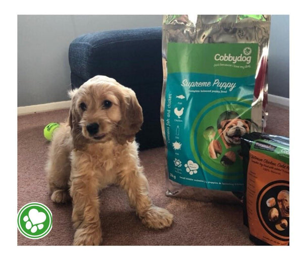 Today we met 11 week old Cockerpoo Nellie. She's been in her new home for just 2 days and she's a bundle of joy! Over the next week her owners are switching her over to Cobbydog Supreme Puppy. We look forward to hearing how she is getting on.