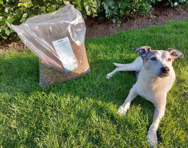 "Here is Neya, our 12 1/2 year old mixed breed. She is getting a little stiff in her joints after exercise and her tummy was getting a little sensitive. We got some samples from Cobbydog which she thoroughly enjoyed. Here she is with her choice of Golden Delight with Turmeraid which she absolutely loves and her poops are the best they have ever been!" Mandy Hurst