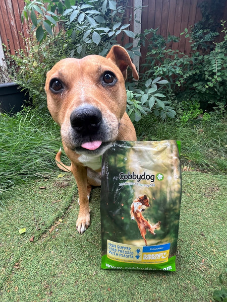 "Princess Honey is a rescue Staffy who always struggled with maintaining a good weight, we have tried good quality low fat kibble but found that this always made her extremely bloated and as I was aware of the risk of bloat and GDV in dogs this always worried me as her stomach would look like a balloon after meals even when I reduced her food to the absolutely minimum she could have, raw is not do-able for us due to our living situation. We found out about cold pressed a few years ago and it was like magic! But the current brand we were using raised their prices and made it difficult for us to afford, Cobbydog is overall cheaper but better content and the varying bag sizes means I can just buy the exact amount I need monthly rather than purchasing a massive bag in one go. Amazing skin, no bloating, overall great health, what more can a dog owner ask for! We get plenty of animal professionals and general public comment on how great she looks. Thank you Cobbydog!" (Instagram: @princesshoney.staffx)