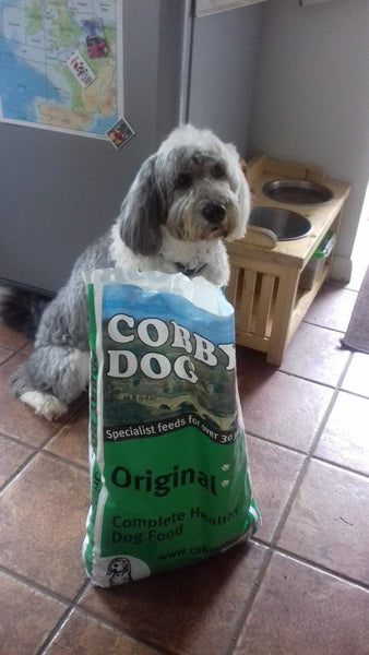 "Here is Roly. He is 11 years old and still as lively as the day he came to live with us age 3. One of the most important things is that his weight at 29 kilos has stayed the same, thanks to Cobbydog Original, which he absolutely loves. I am now introducing fish supper to keep him running about like a puppy and playing with his 4 year old labradoodle brother, Loki." Sandra